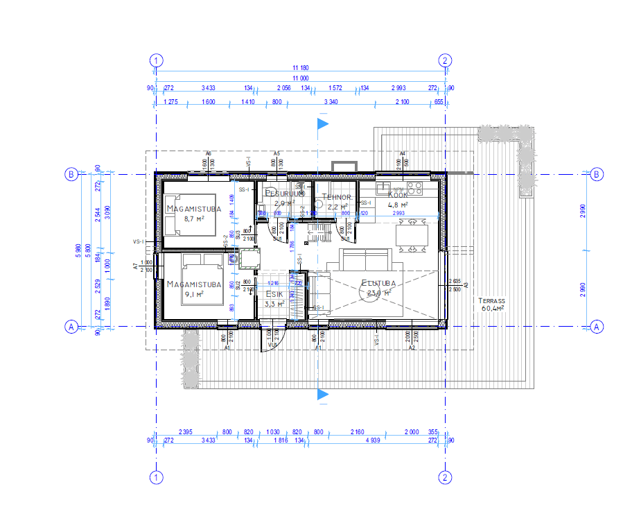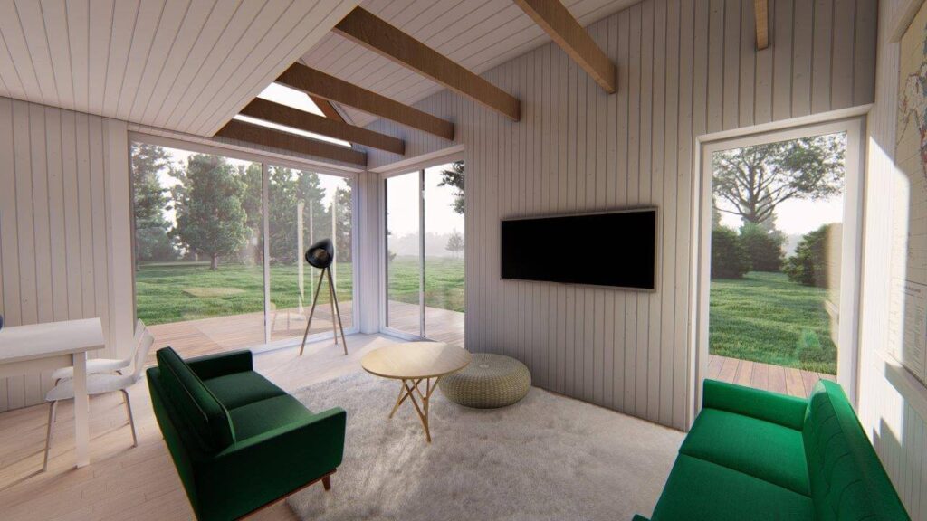Das Holzrahmenhaus Vogelkirsche bietet eine attraktive Gesamtfläche von 86 qm, eine Nutzfläche von 75 qm und 3 Schlafzimmer.