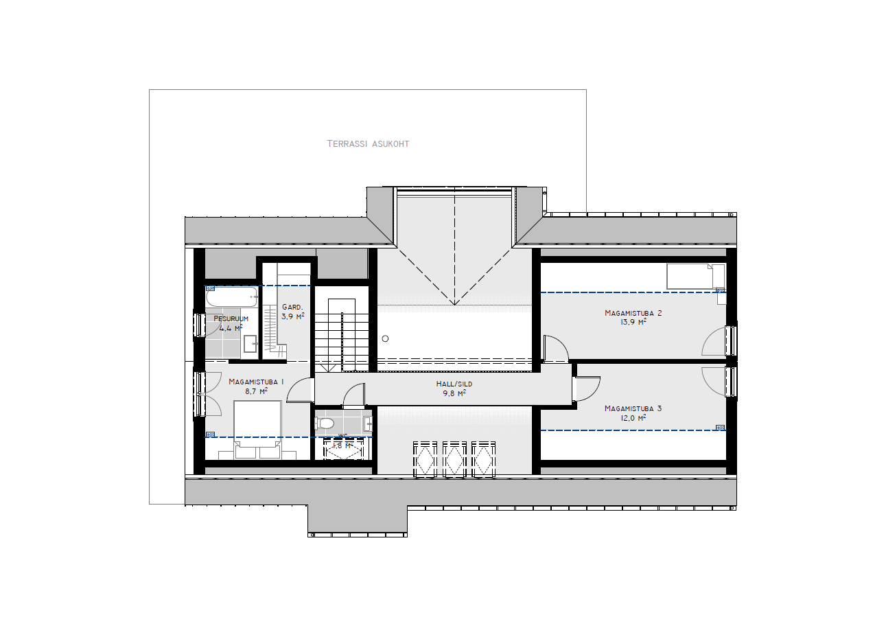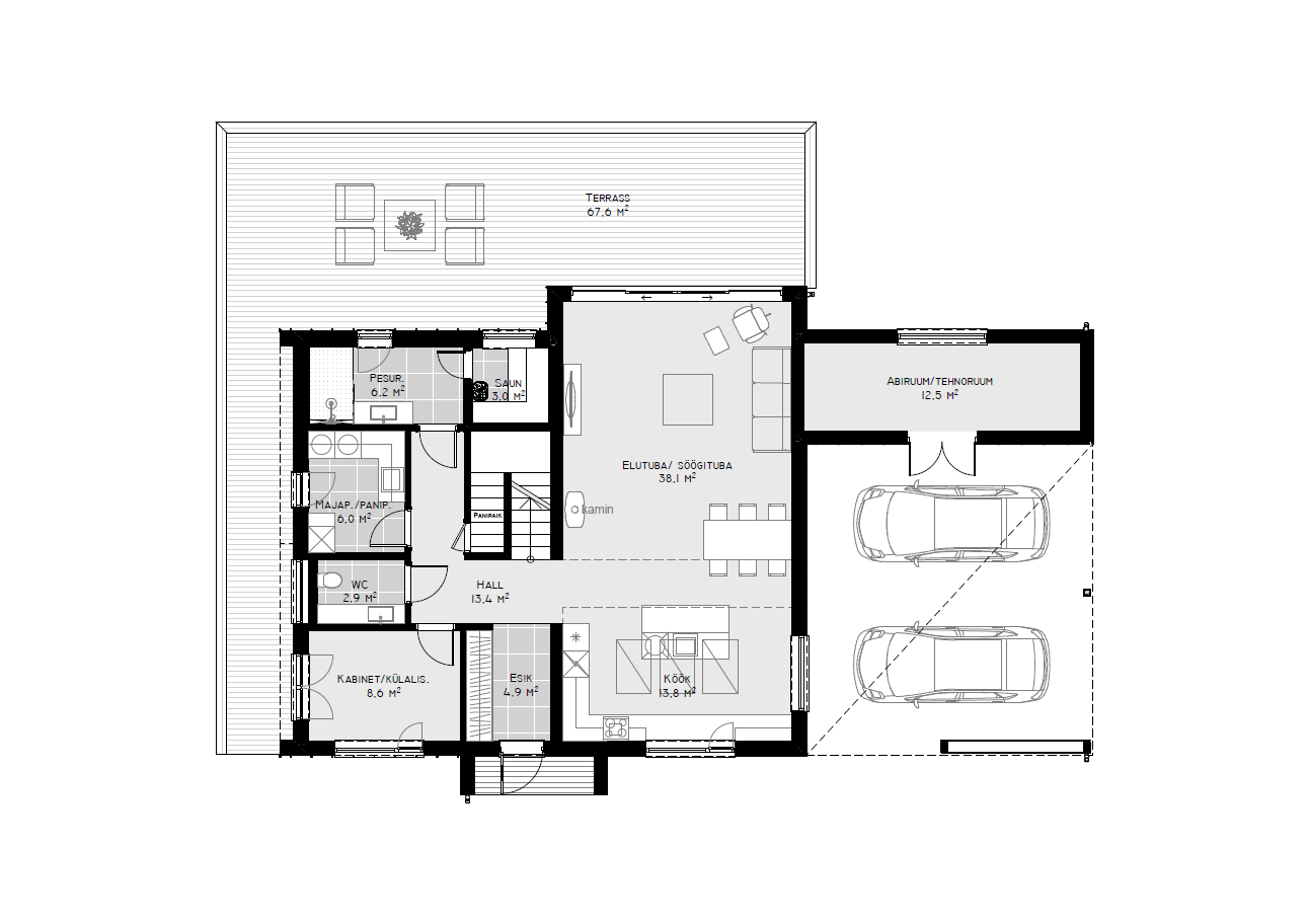 Das Elementhaus Lärche 161 hat eine Gesamtfläche von 185 qm, eine Nutzfläche von 161 qm, Sauna, Balkon, Terrasse und 3 Schlafzimmer.