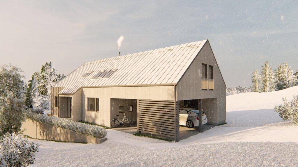 Innen überzeugt das Haus durch ein durchdachtes Raumkonzept. Der offene Wohn- und Essbereich ist das Herzstück des Hauses, ergänzt durch eine moderne Küche mit hochwertigen Geräten. Die großzügigen Schlafzimmer und das stilvolle Badezimmer bieten Komfort und Ruhe. Hochwertige Materialien und eine sorgfältige Verarbeitung garantieren ein angenehmes Wohngefühl. Der großzügige Garten und die Terrasse laden zum Entspannen und Genießen ein, machen das „Lärche“ zu einem perfekten Zuhause.