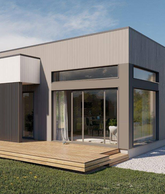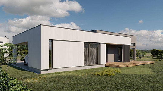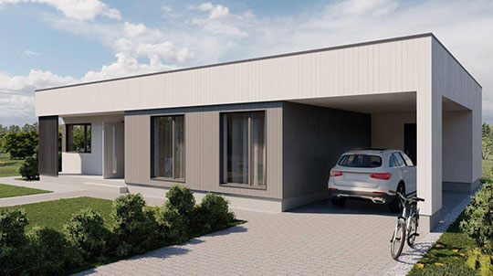 Das Elementhaus Lebensbaum 105 bietet eine Gesamtfläche von 154 qm, eine Nutzfläche von 105 qm, Sauna, 3 Schlafzimmer und einen praktischen Autounterstand.