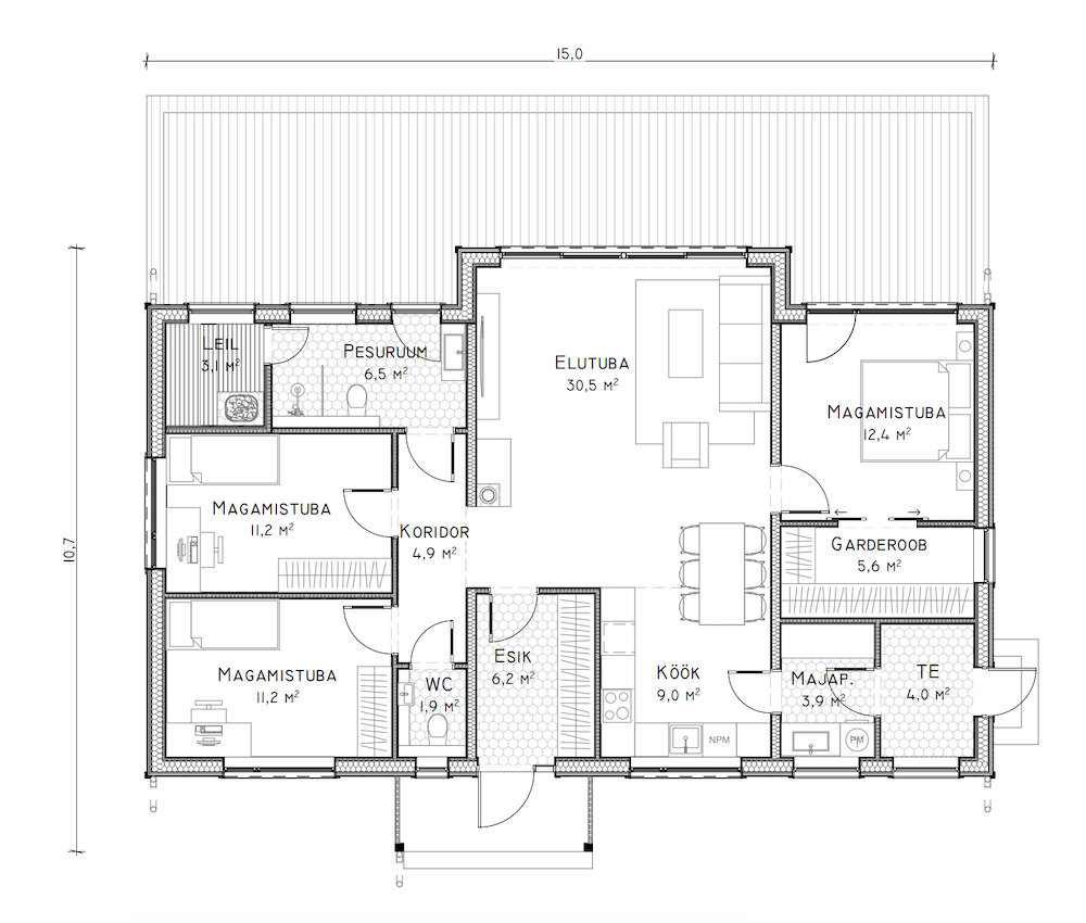 Mit einer Gesamtfläche von 137 qm und einer Nutzfläche von 110 qm bietet das Haus viel Platz für die ganze Familie. Der offene Grundriss verbindet den Wohn-, Ess- und Küchenbereich harmonisch. Drei geräumige Schlafzimmer und ein luxuriöses Badezimmer sorgen für Komfort und Privatsphäre.